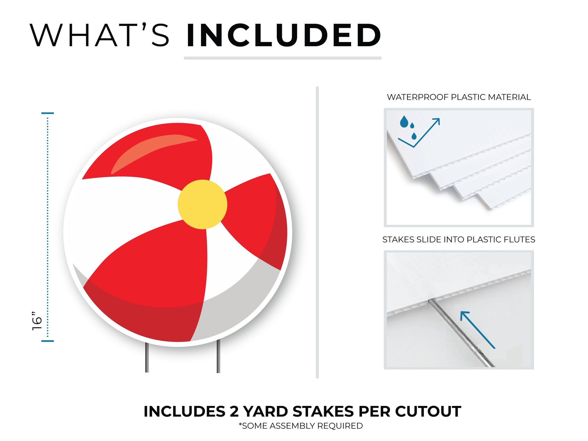 Beach Ball Yard Sign Cutout | Tropical Beach Décor | Personalized Lawn Party | Build Your Own Yard Cutout Set Customizable | Includes Stakes