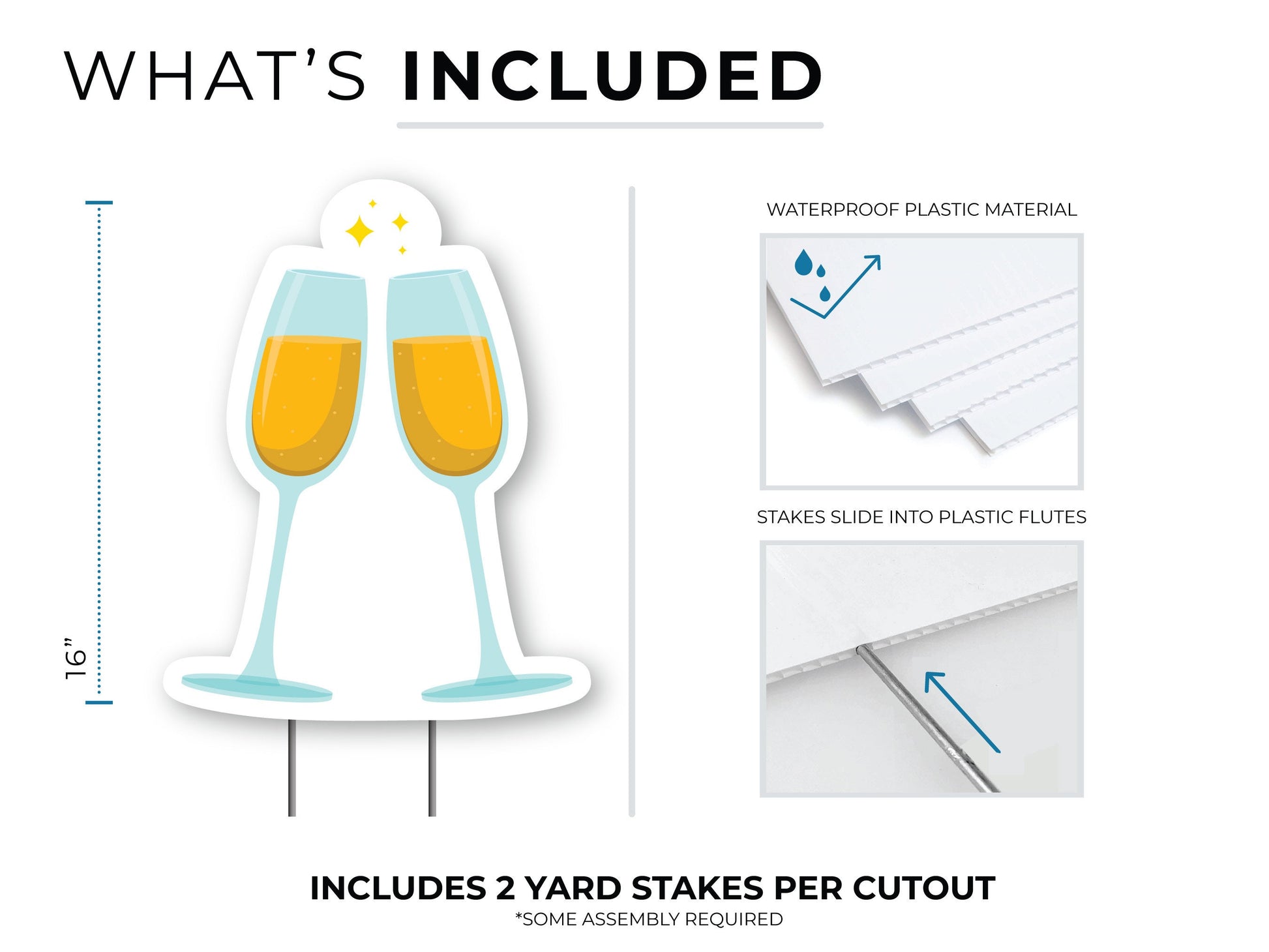 Champagne Clink Yard Sign Cutout | Happy Birthday Yard Décor | Personalized Lawn Sign | Let's Party | Customizable Yard Set Includes Stakes