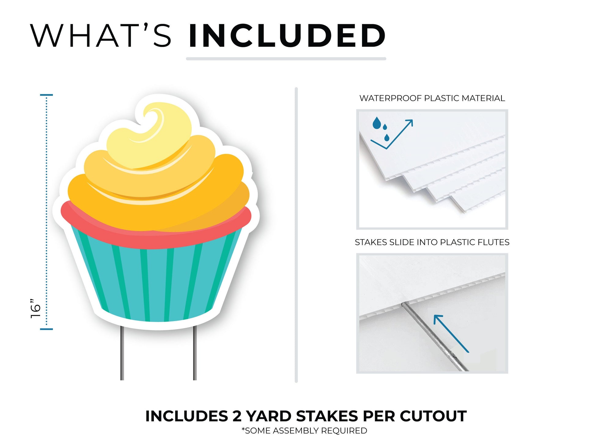 Cupcake Yard Sign Cutout | Happy Birthday Yard Décor | Lawn Sign | Honk It's Your Birthday | Customizable Yard Set | Includes Stakes