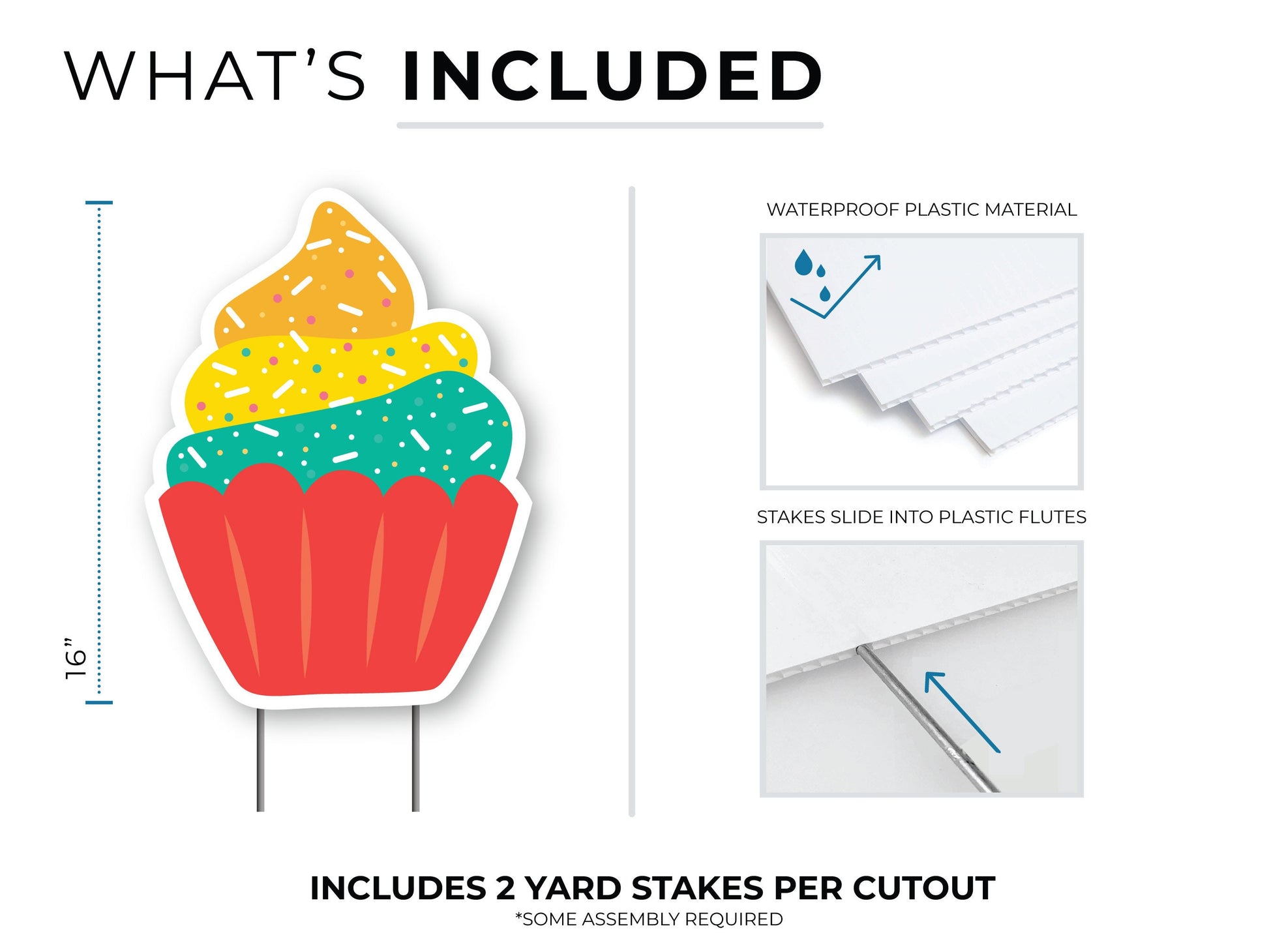 Cupcake Yard Sign Cutout | Happy Birthday Yard Décor | Lawn Sign | Honk It's Your Birthday | Customizable Yard Set | Includes Stakes