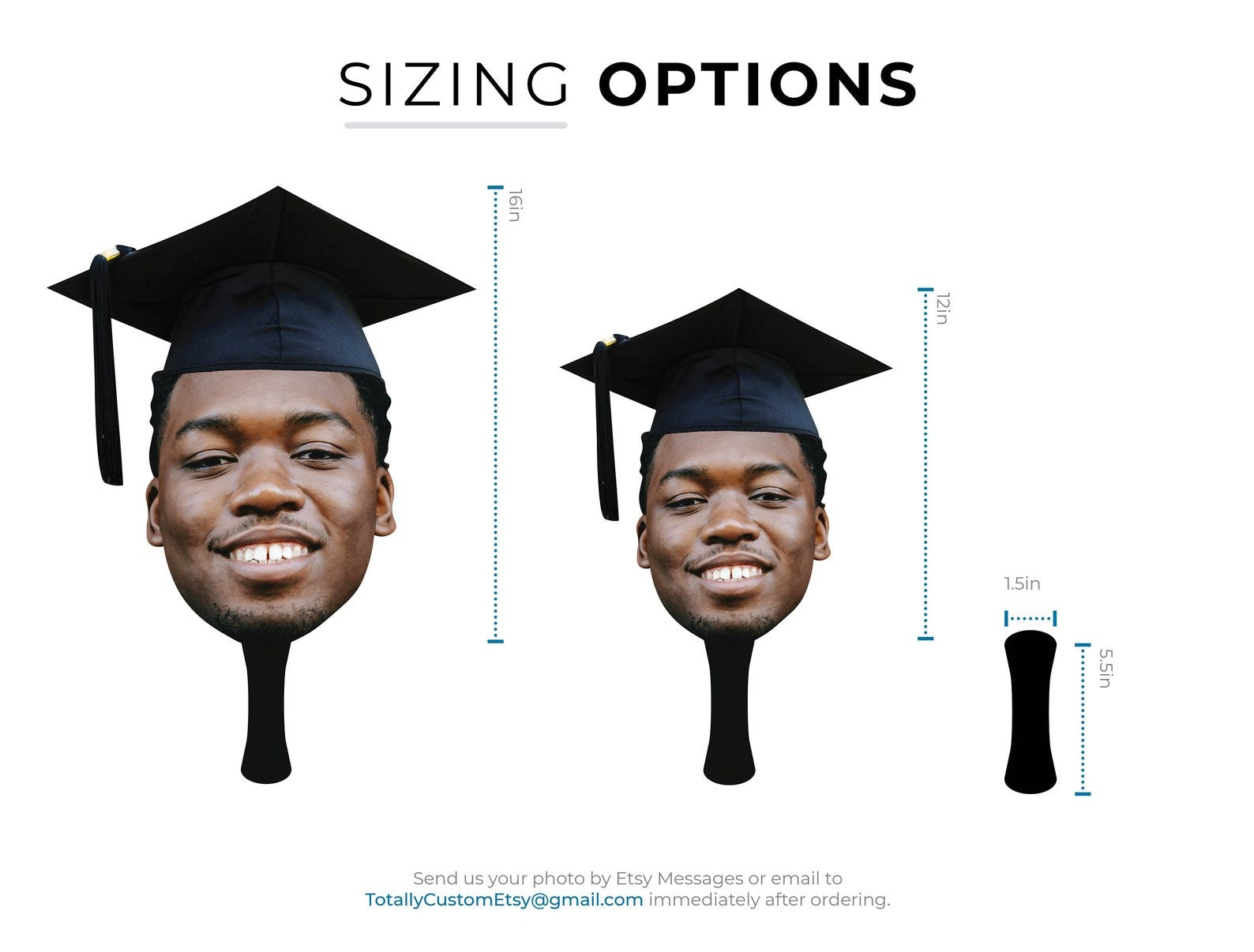 Custom Graduation Handheld Fan Face With Grad Cap | Congrats Grad | Head Cutout on Stick | Graduation 2024 | Multiple Sizes | Multi-Pack