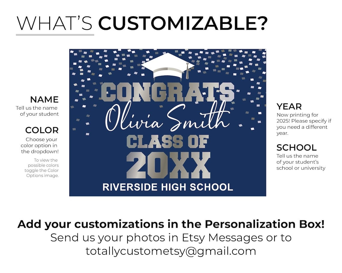 Custom Graduation Yard Sign | Double-Sided | Personalized Congrats Grad | Customizable Graduation 2025 Multiple Colors | 24"x 18"