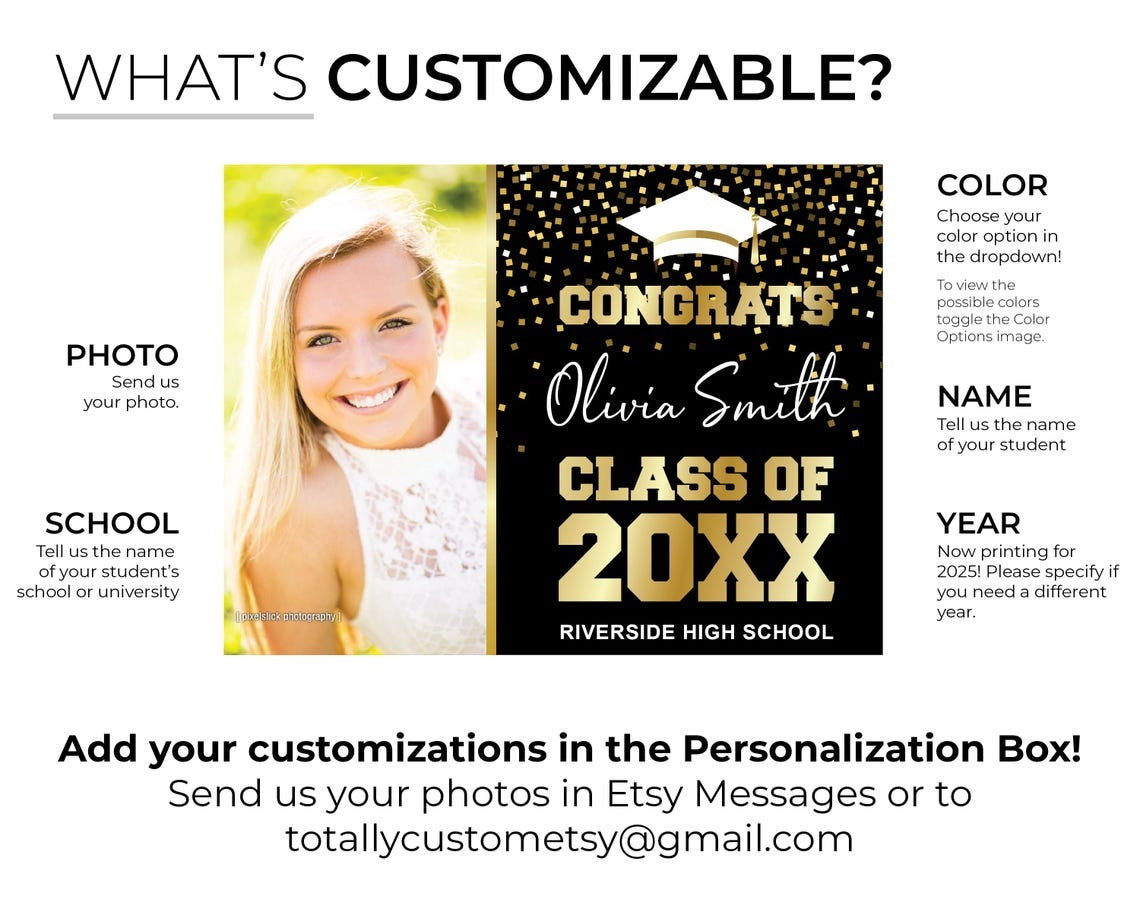 Custom Graduation Yard Sign With Photo | Double-Sided | Personalized Congrats Grad | Customizable Graduation 2025 | 24x18