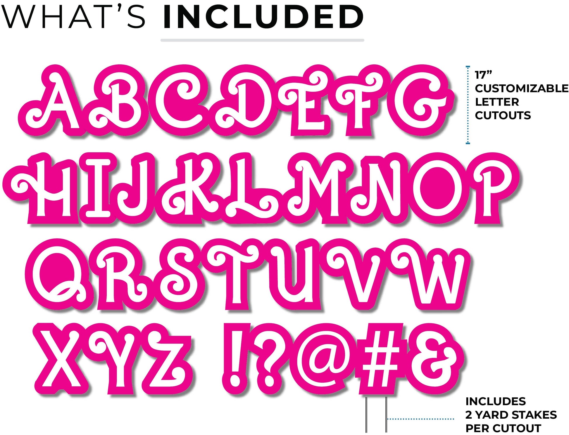 Custom Hot Pink Letter Yard Sign Cutouts | Party/Event Yard Décor | Personalized Yard Letters | 17" Lawn Letters with Stakes