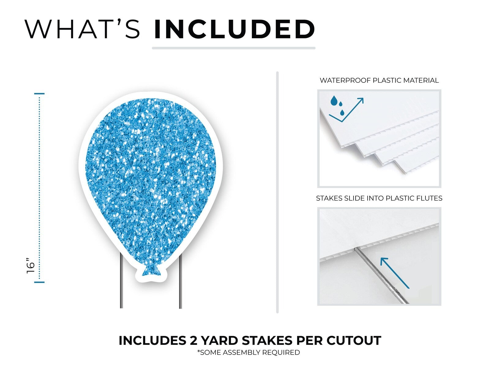Glitter Balloon Yard Sign Cutout | Custom Yard Décor | Lawn Sign | Birthday, Graduation, Party | Customizable Yard Set | Includes Stakes