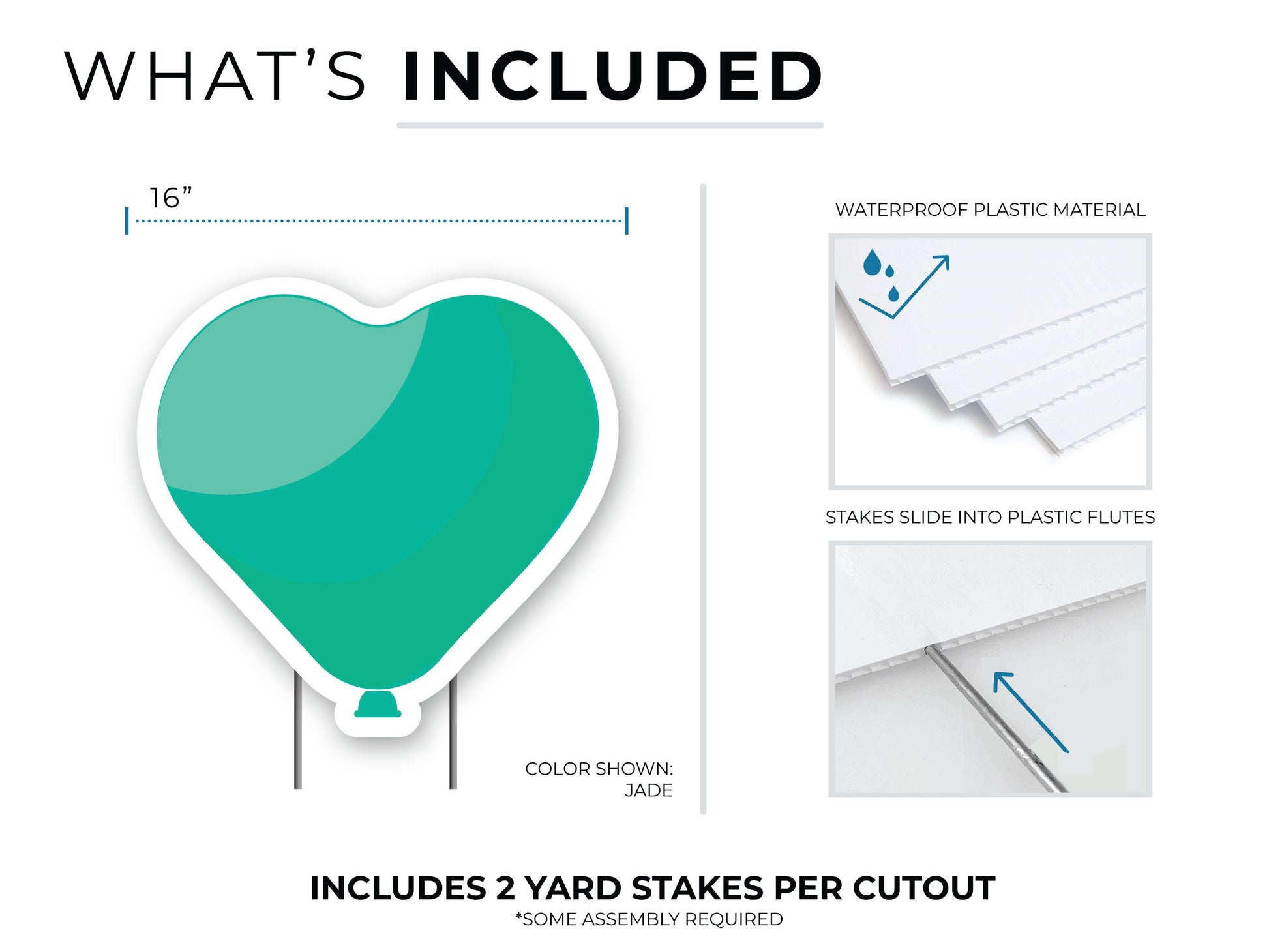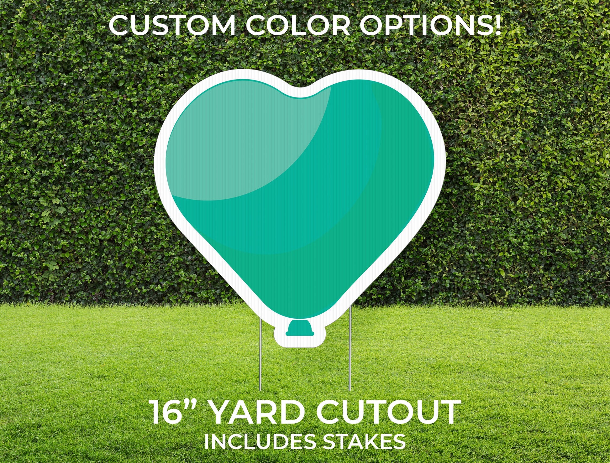 Heart Balloon Yard Sign Cutout | Custom Yard Décor | Lawn Sign | Birthday, Graduation, Party | Customizable Yard Set | Includes Stakes
