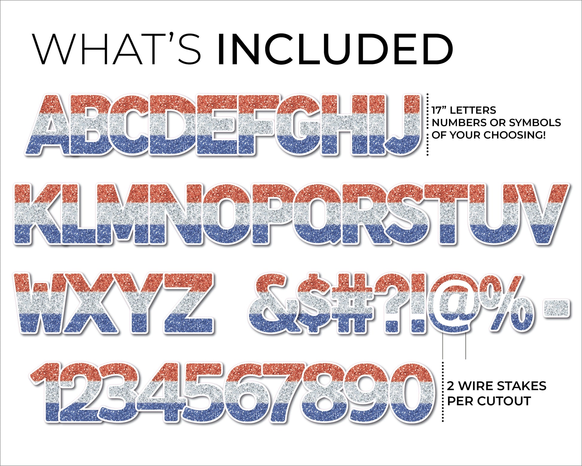 Red White & Blue Glitter Letter Yard Sign Cutouts | 4th of July Yard Décor | Personalized Independence Day | 17" Lawn Letters with Stakes