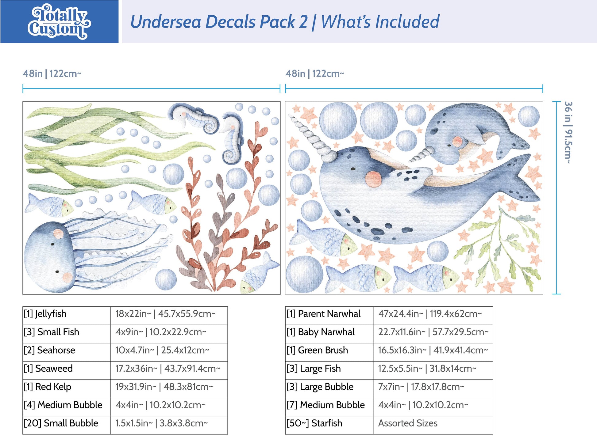 Available in two different packs (see listing photos). Each pack includes 2 sheets of decals. Decals can be arranged any way you like to create your own unique underwater scene.