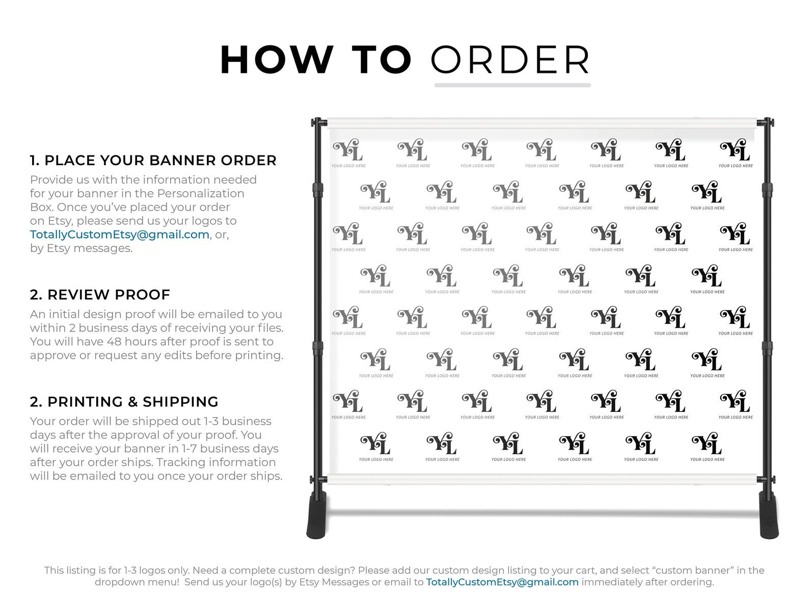 Stand Included Custom Step and Repeat Banner | Business Logo Backdrop | Personalized Birthday, Wedding, Party Event Backdrop | Full Color
