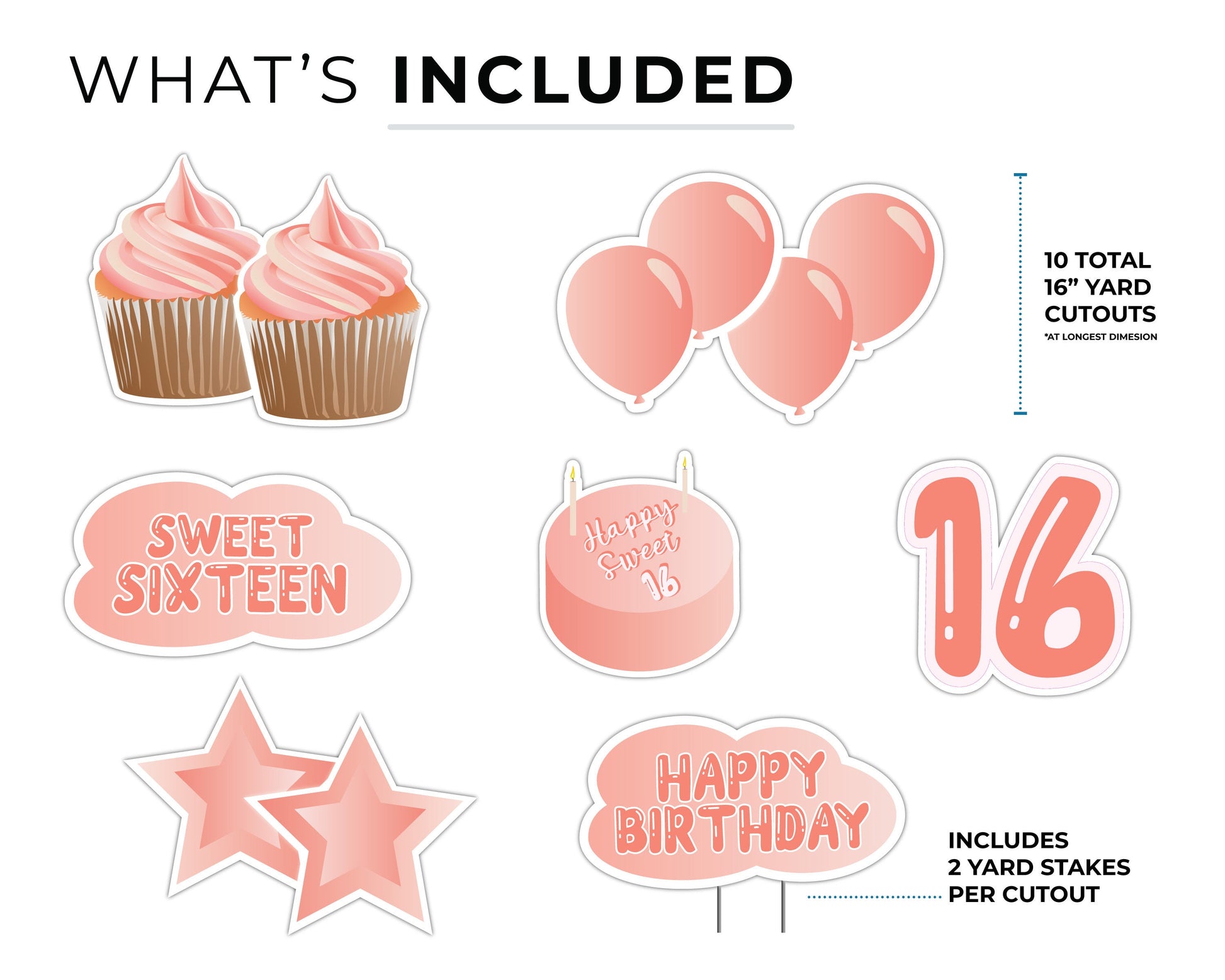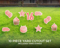 Sweet Sixteen Yard Sign | 10 Piece Cutout Set | Sweet Sixteen Pink Yard Décor | 16 Birthday Yard Card | 16" Lawn Sign with Stakes