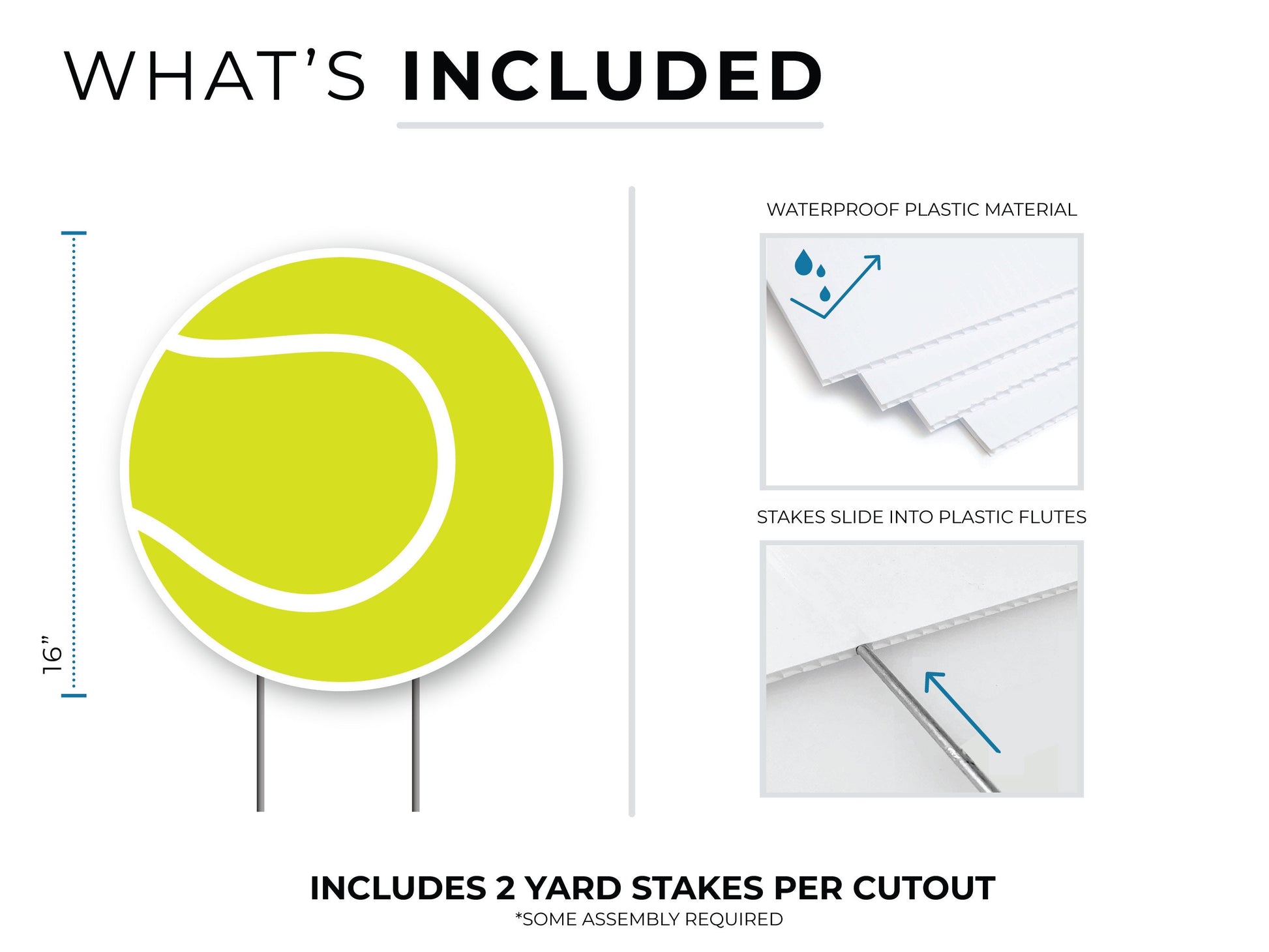 Tennis Ball Yard Sign Cutout | Sports Yard Décor | Personalized Lawn Sign | Build Your Own Yard Cutout Set | Customizable | Includes Stakes