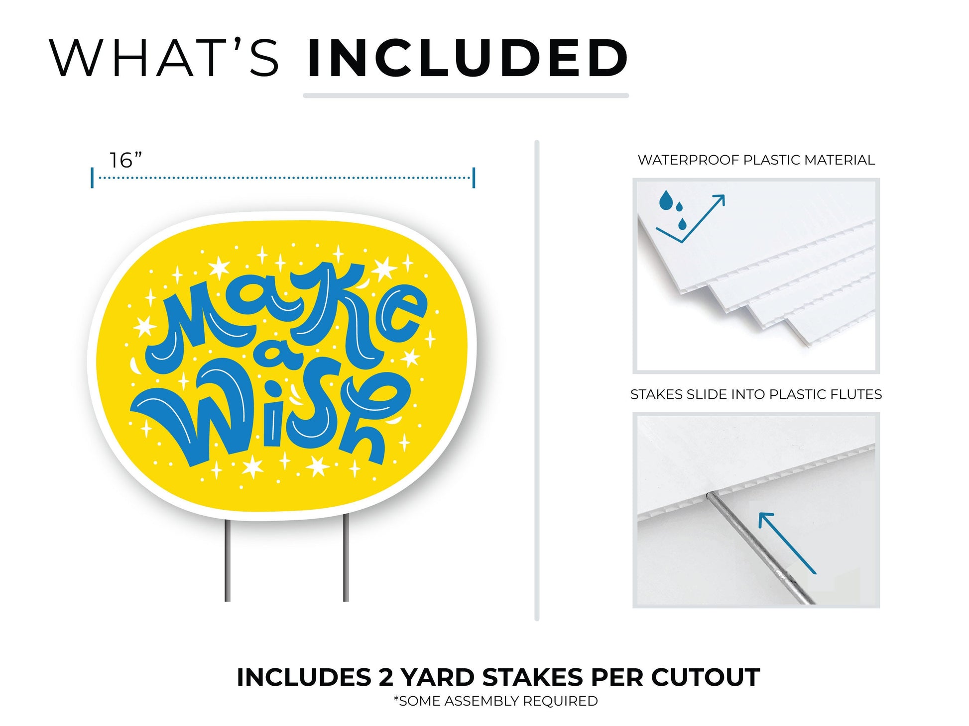 Yard Sign Cutout | Happy Birthday Yard Décor | Personalized Lawn Sign | Make a Wish| Customizable Yard Set | Includes Stakes